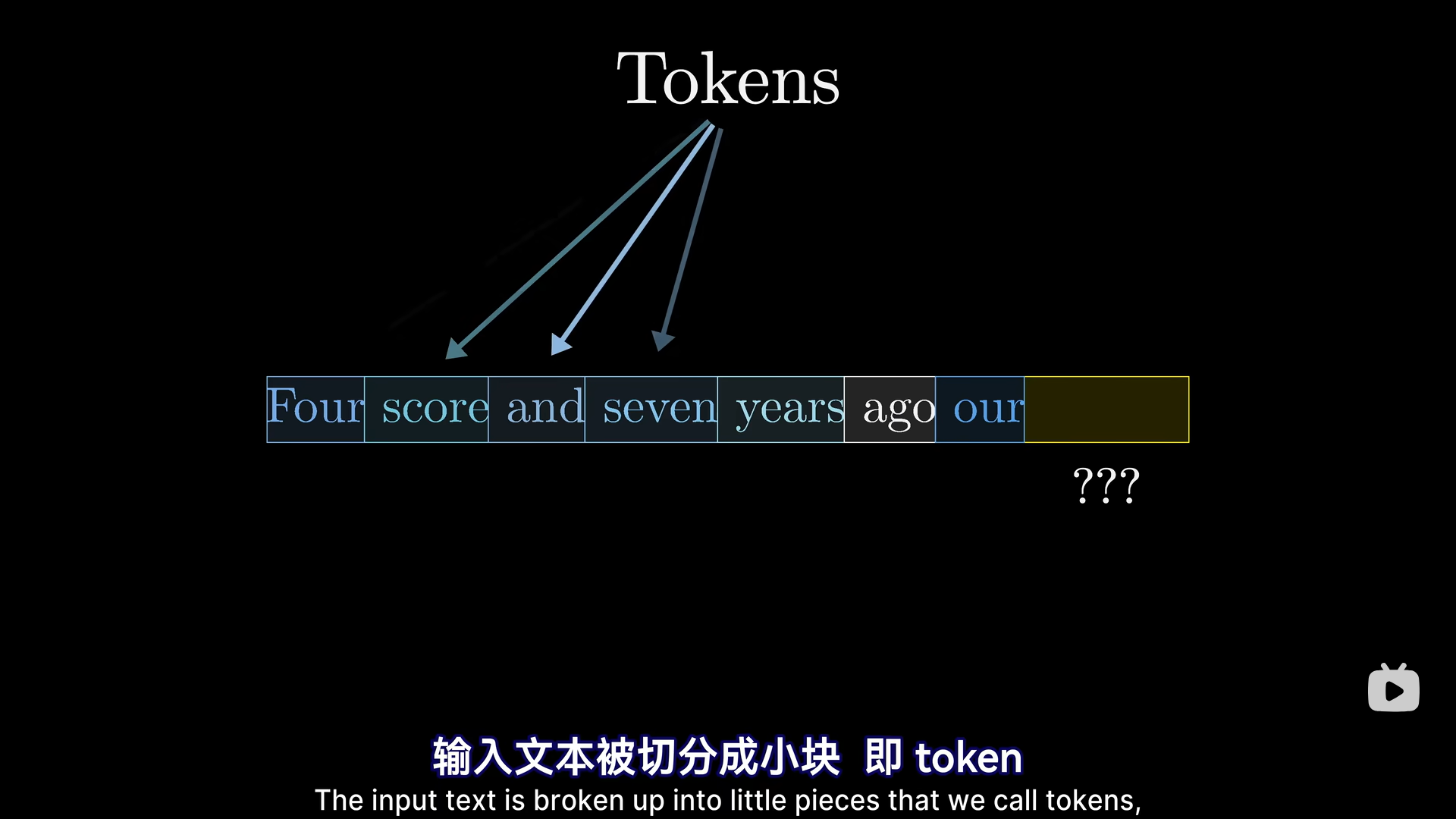 输入的一段话被切分成小块,称为token,在文本中,token往往是单词或者单词片段或其他常见的字符组合