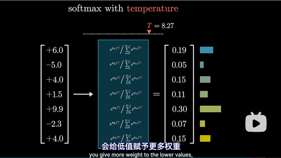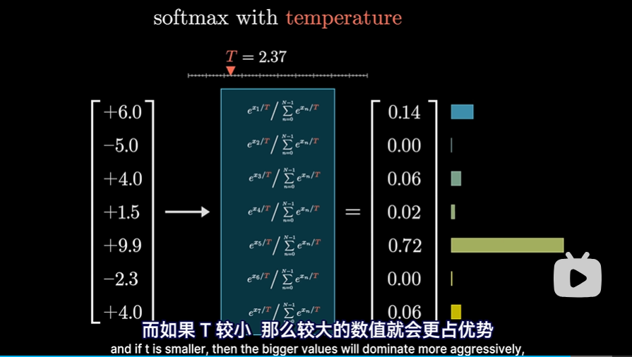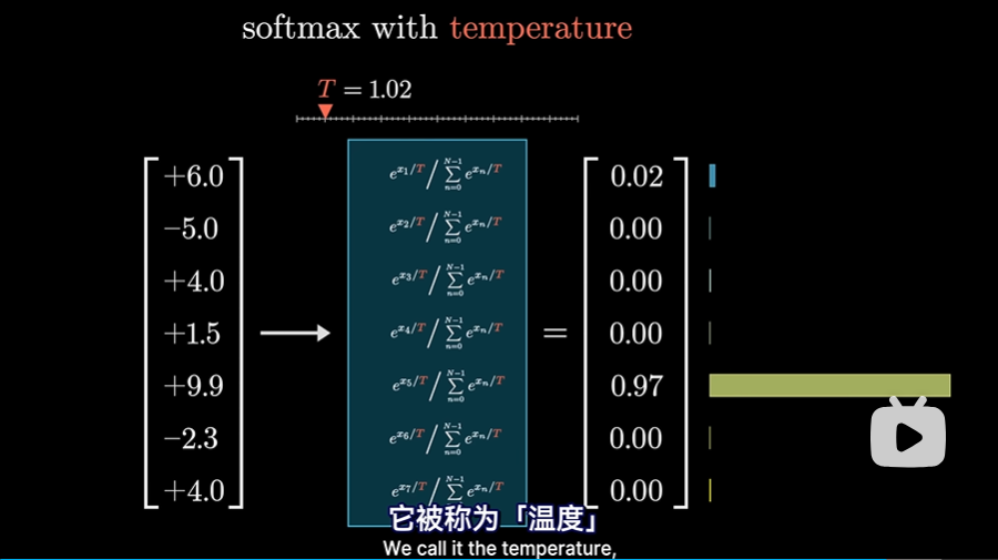 在某些情况下,例如chatGPT使用该分布生成下一词时,可以给这个函数加一些趣味性。给指数加个分母常量T,可以称之为“温度”: