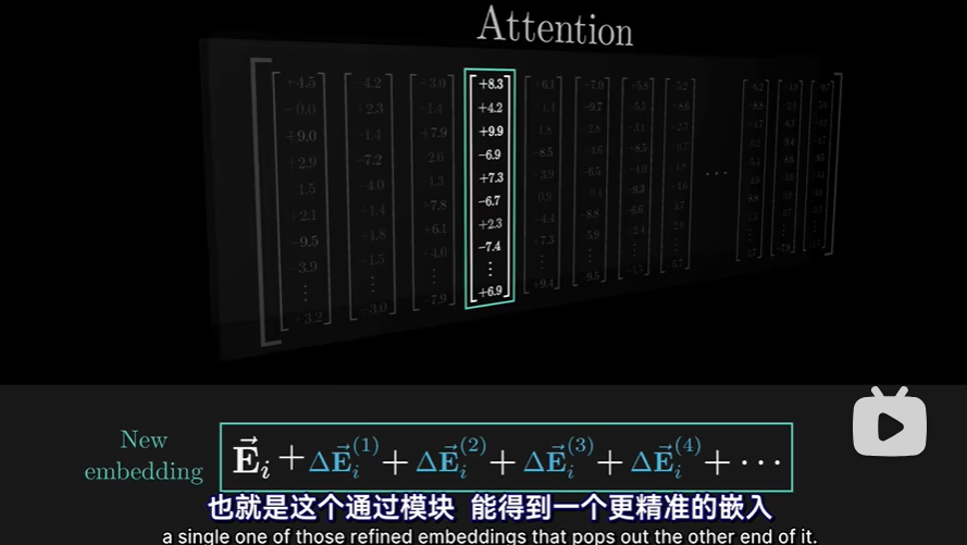 - 当然不只是一列,而是对每一列都进行上述的操作,从而通过注意力模块,得到一系列更精准的嵌入向量