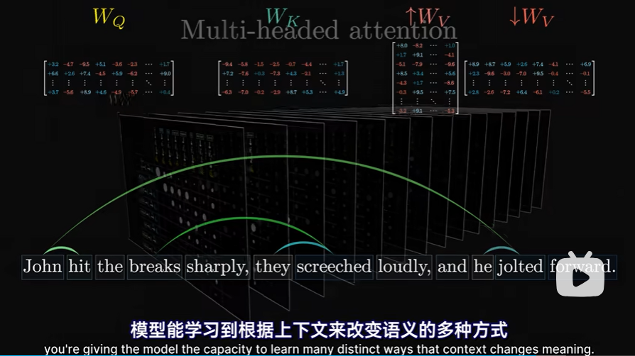- 【【官方双语】直观解释注意力机制,Transformer的核心 | 【深度学习第6章】】 https://www.bilibili.com/video/BV1TZ421j7Ke/?share_source=copy_web&vd_source=2d06b9a293d399ed58c19e183f9d84da